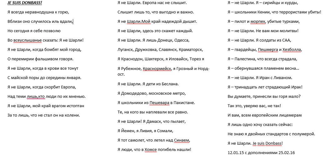 - Я слышала драматическую историю появления этой книги на свет - про гибель друга Уэльбека в редакции "Шарли Эбдо" и т.п., а сама я отнеслась к трагедии "Шарли" и последовавшему за ней маршу "Je suis Charlie" от мировых лидеров с известным скепсисом, который у меня вылился вот в эти строки: