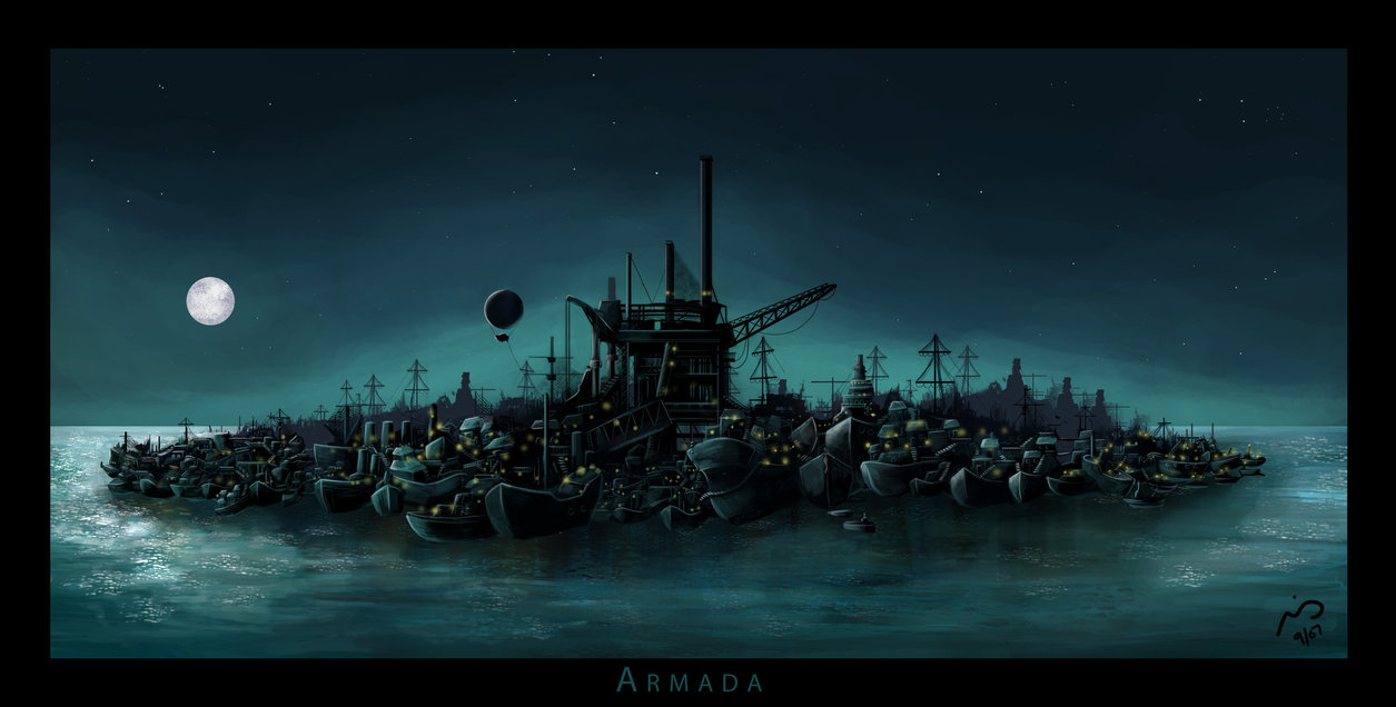 Здесь автор возвращается к некогда популярному, но немного подзабытому жанру путешествия на корабле. Во времена Жюля Верна герои постоянно отправлялись на кораблях к таинственным новым землям, где с ними могло приключится что-то немыслимое. Сейчас белые пятна на планете исчезни настолько, что любой человек может со Street View осмотреть любую точку планеты не выходя из дома. Так что приключения перенеслись в область фантастики. Город-флот Армада, находящийся под управлением последних романтиков, отправляется буквально на край Земли, далеко за пределы изведанного, через воды Стикса, где до сих пор не проплывало ничто живое. При этом не все жители согласны с таким безрассудным планом, предпочитая честную пиратскую жизнь и знакомые воды, и с каждым пройденным километром романтиков становится всё меньше.