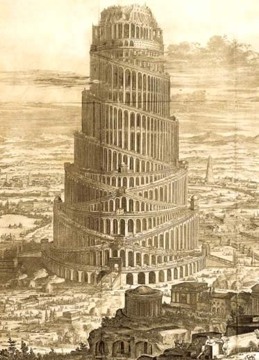 Вавилонская башня. Изображение из трактата Афанасия Кирхера, издание 1679 года