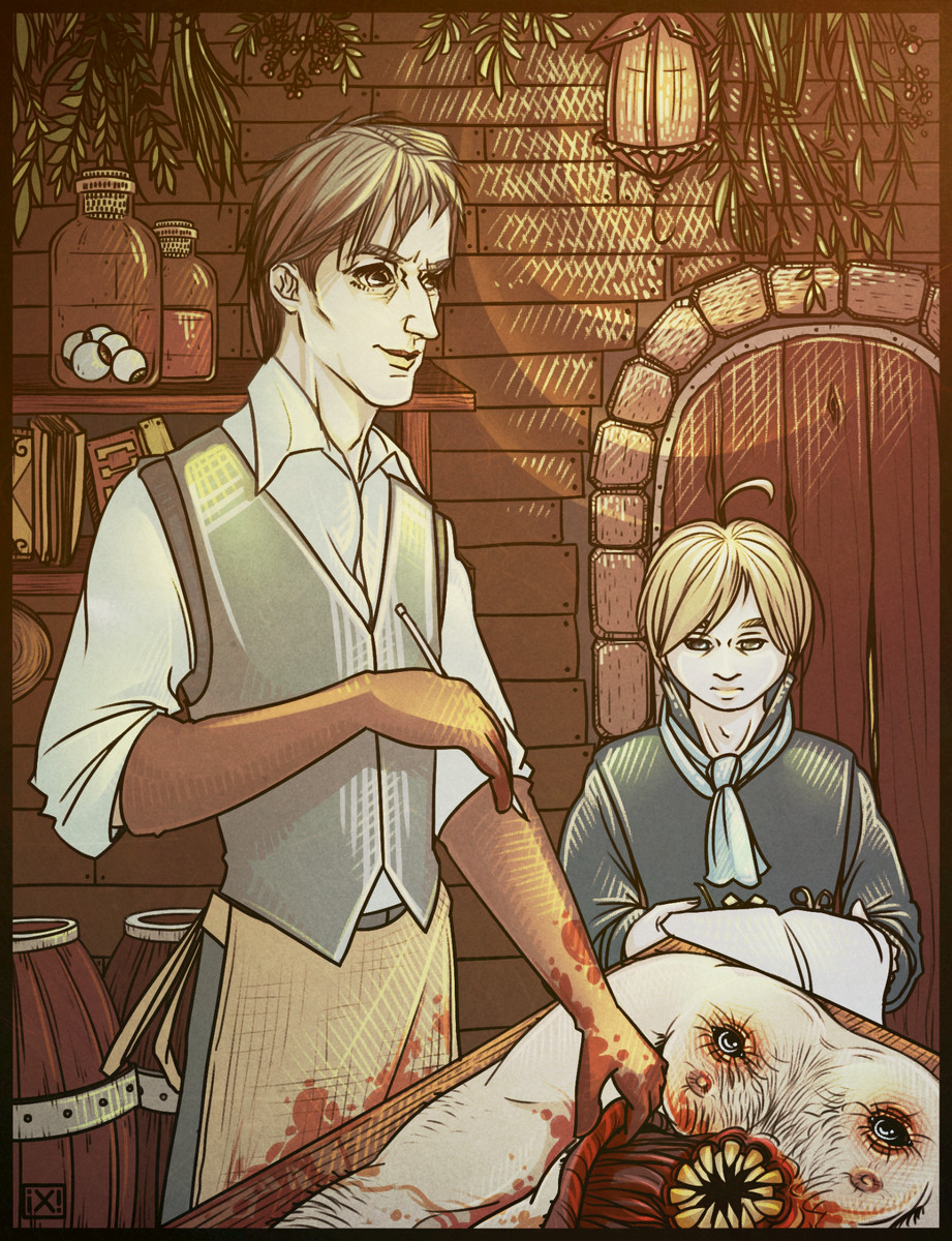 История определенно не для впечатлительных и слабонервных. Здесь хватает и расчленёнки, и крови, и насекомых разной степени мерзости (привет червям и личинкам), и не очень приятных личностей. Но как же интересно, а местами ещё и трогательно! Несмотря на множество неприглядных и порой ну оооочень противных подробностей, книга увлекла, желания отложить её не возникло ни разу (скорее возникло желание отложить всё остальное вплоть до сна и читать, читать, читать) и теперь, наперекор всем книжным планам, меня преследует мысль: