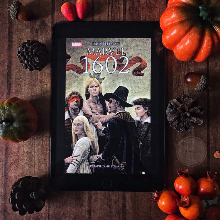 Аноним6 августа 2021 г.Читать далее«Marvel. 1602” - графический роман Нила Геймана, отличительной чертой которого является то, что действия перенесены в 1602 год.