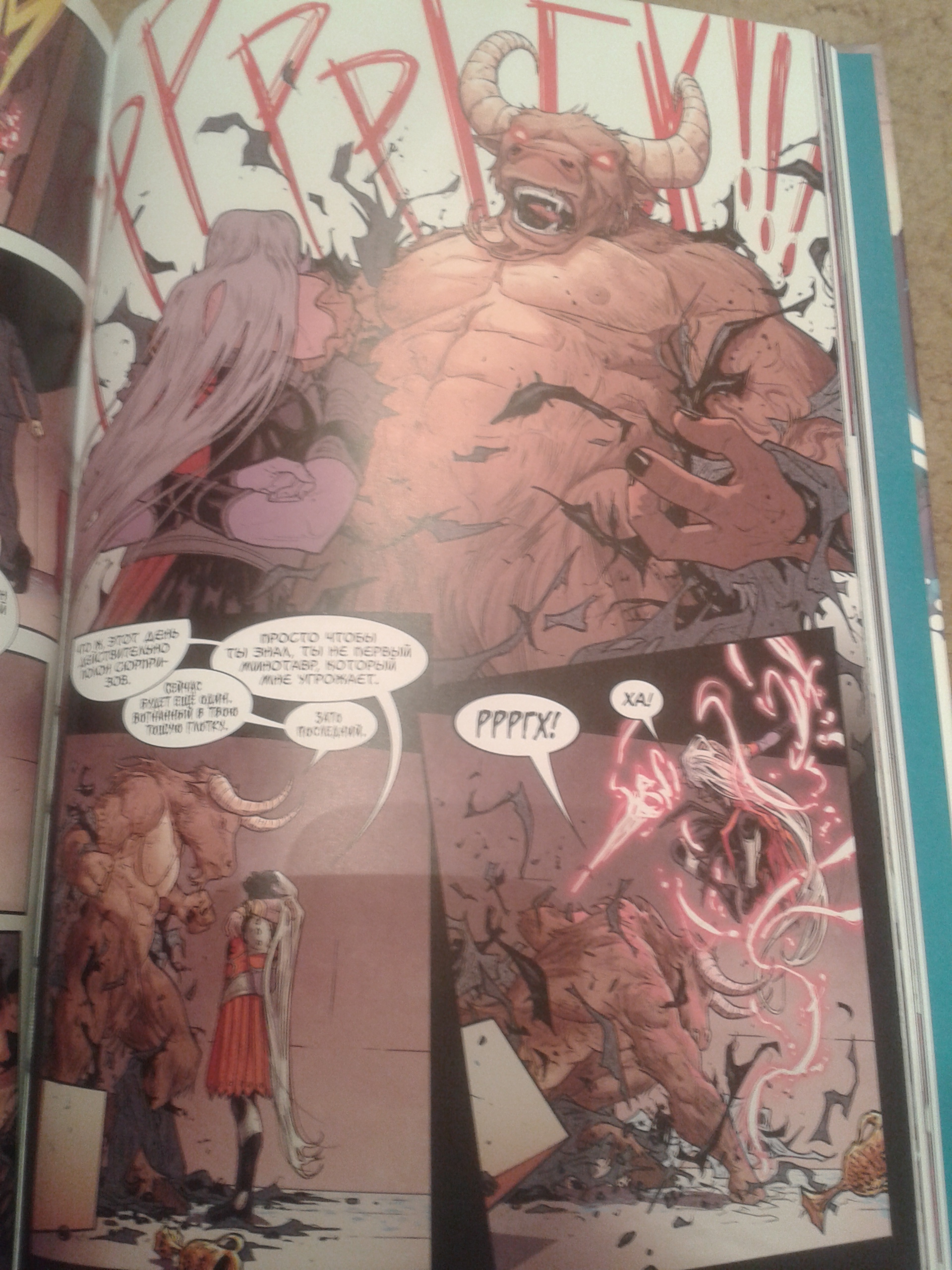 Есть несколько забавных моментов. Например, женщина-злодей сдается женщине-герою из женской солидарности. Один переходит из категории "нехороший человек и паршивый отец" в категорию "полный тиран и кретин". Его жена великолепна. И вообще, женщины в этом комиксе хороши, а вот мужики как-то не очень. Даже тот самый старый Тор, хотя он к концу несколько исправляется.