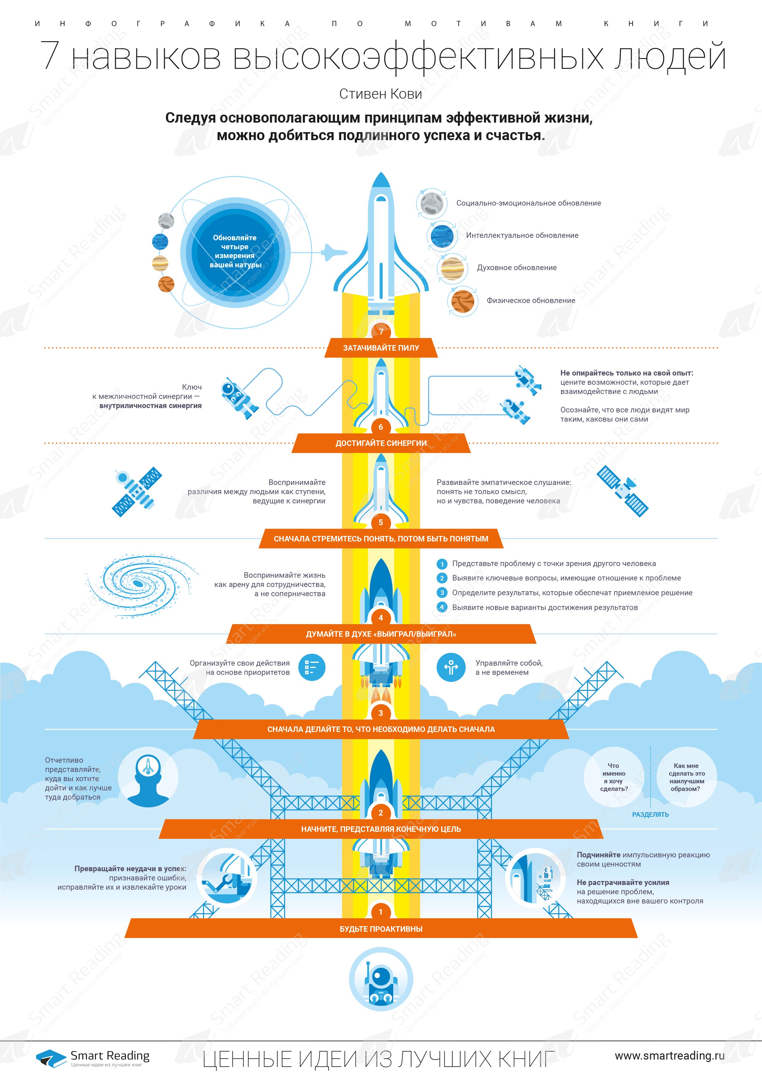 Сами 7 навыков не повторяются, описаны простым языком с множеством подпунктов и опять-таки тех же примеров. Эти навыки будут полезны каждому человеку, как минимум для улучшения уровня жизни, совершенствования и поднятия уровня эффективности и продуктивности.
