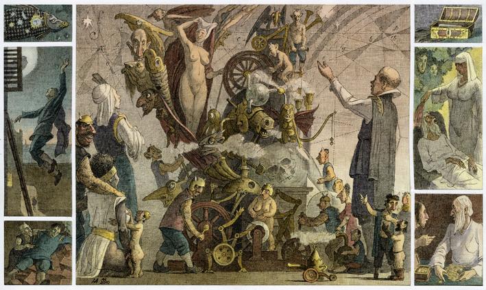 Есть некая ирония, а может, и самоирония, в рассказе о персонаже, который 15 лет писал энциклопедию в 100 томов по всем областям знаний, и очень гордился таким славным трудом. Но он не успел представить на суд людской такое сокровище науки, все книги банально сгрызли мыши, крысы, и он потратил ещё 8 лет, чтобы восстановить свой титанический труд, но и это было в итоге напрасно. Есть грустная нотка в этой истории о том, что любой труд рано или поздно становится напрасным, любое добытое знание в итоге приносит разочарование. Не менее показательна и история о том, как этот же персонаж написал свою первую учёную книгу, которая оказалась никому не нужна, попросту никто её не понял, никто в неё не вникал, лишь грубо покрыли вульгарными пересудами. Непостижимым образом смешиваются у автора во всех этих историях и тонкая ирония, и толика разочарования. К лёгкому подтруниванию примешивается капля усталости, капля горечи, особенно это чувствуется в истории графа, увлекающегося изготовлением чернил.