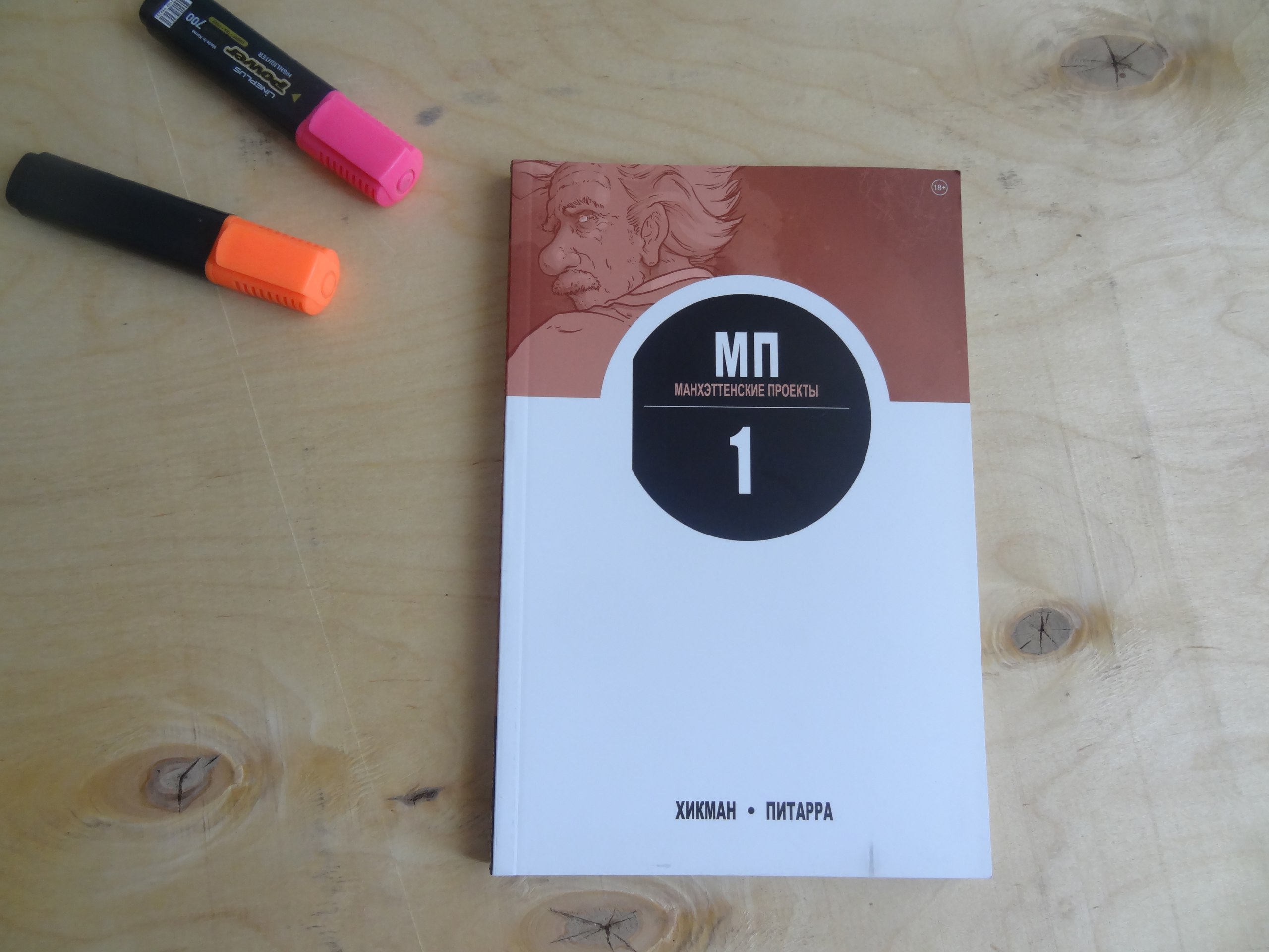 Именно с таким выражением лица я читала первый том "Манхэттенских проектов". И до сих пор нахожусь на перепутье: или добавить в избранное и еще раз присвистнуть от восторга про такие крутые пироги, добывая себе в домашнюю библиотеку, или аыаааааа что это было, куда бежать. Потому что рисовка совсем не про то, как я люблю, а начинка делает с моим мозгом что-то страшное.