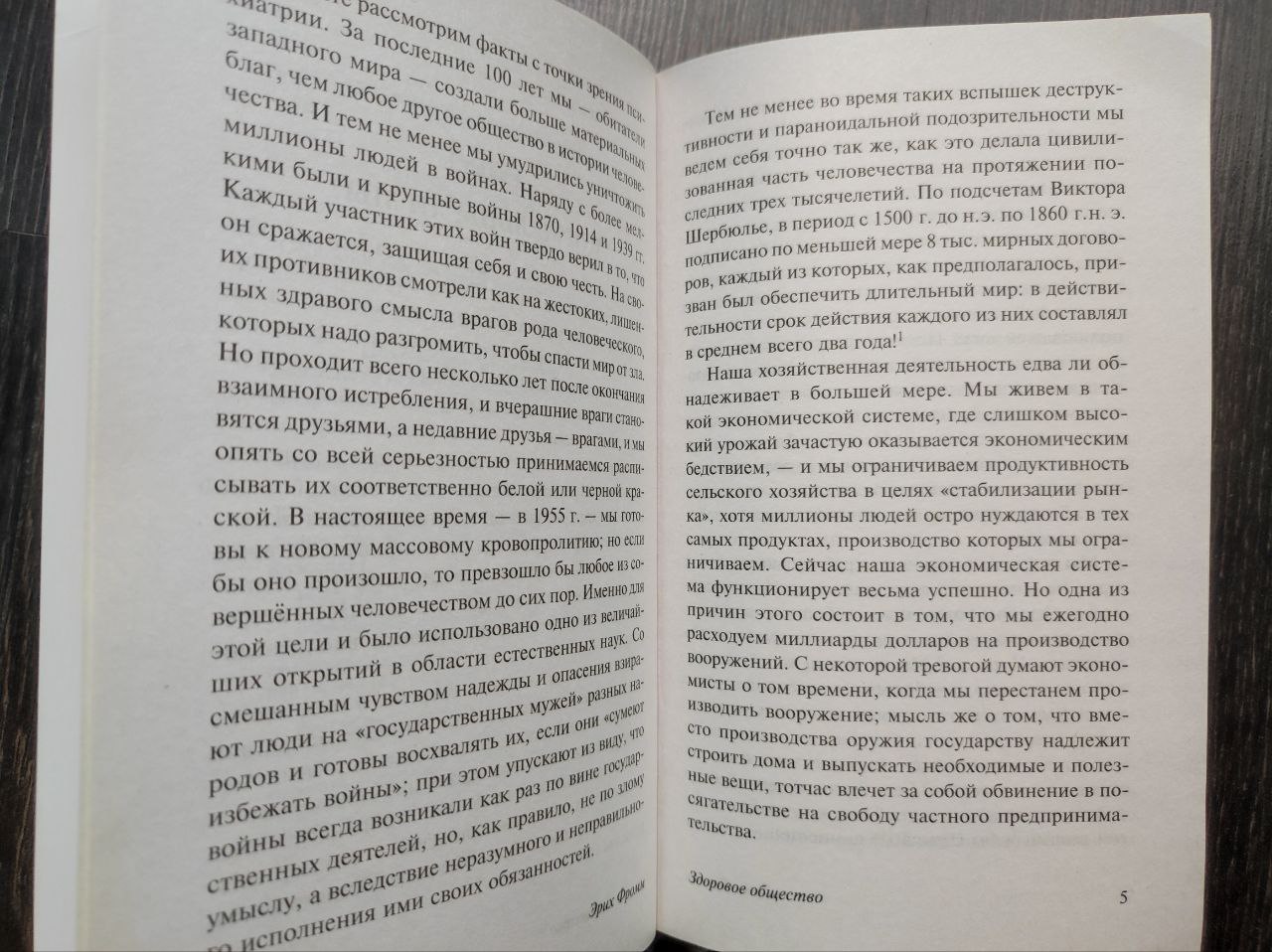 Что касается самой книги «Здоровое общество», то, как всегда, Фромма читать легко и приятно, как будто ведешь приятную беседу, в которой, кроме того, тебе все понятно. Очередная его книга отличается легкостью для восприятия и не вызывает сложностей в понимании той или иной мысли. Вполне себе «научпоп» такой. Книга выстроена в хорошую структуру, где одна глава грамотно переходит в другую, формируя, таким образом, цельное полотно, а читатель успевает следить за развитием мысли. Между тем мысли не представляют собой сплошной авторский монолог, а прямо-таки пронизаны примерами и отсылками к другим источникам, а конец книги и вовсе завершает не совсем точная цитата из Библии. Тем не менее, большое количество отсылок не делает текст разношёрстным, а наоборот – формирует полную картину, подкрепленную сотнями дополнительных материалов.
