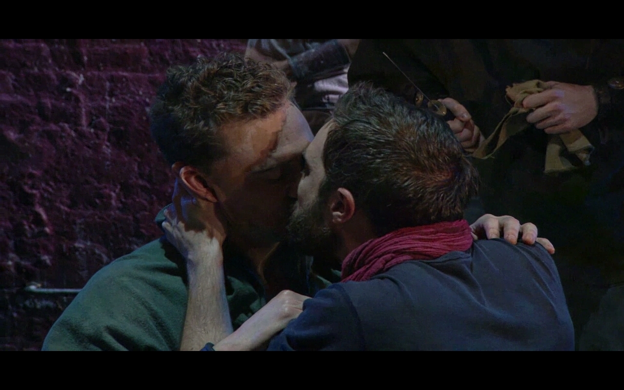 Так радостно, как здесь, при нашей встрече.И это только коротенький отрывок, а монолог, как водится у Шекспира, длинный, а вся сцена примирения (увы – не навсегда) ещё длиннее, и, в общем, неудивительно, что в советском телеспектакле 1968 года монолог Авфидия очень сильно урезали (советские цензоры всё же были не дураки и, по ходу, всё поняли), в экранизации от ВВС 1984 года Авфидий в этой сцене весьма откровенно и (не)двусмысленно гладит Кориолана по груди под рубашкой, в фильме 2011 года он помогает ему привести себя в порядок после скитаний (в частности, лично бреет), и в какой-то момент впору подумать, что они сейчас поцелуются, – а в спектакле 2014 года с Томом Хиддлстоном в роли Кориолана поцелуй (короткий, но тем не менее) таки имеется. И остаётся только сказать, что британцы всяко знают, как правильно ставить пьесы драматурга, который для них «наше всё».