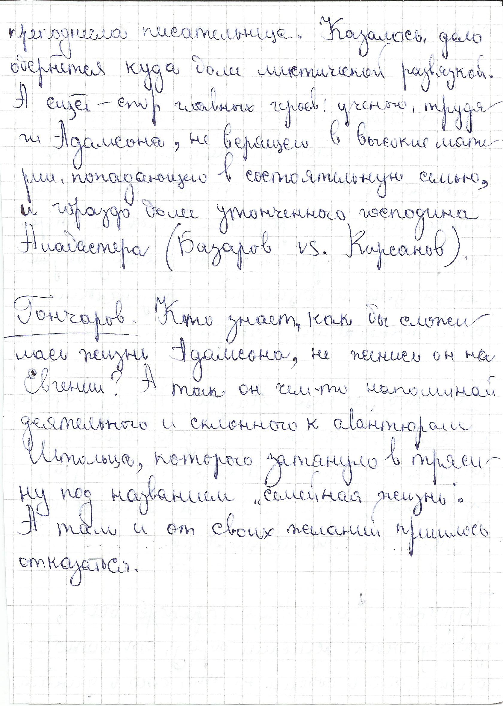 Гончаров. Кто знает, как бы сложилась жизнь Адамсона, не женись он на Евгении? А так он чем-то напоминает деятельного и склонного к авантюрам Штольца, которого затянуло в трясину под названием "семейная жизнь". А там и от своих желаний пришлось отказаться.