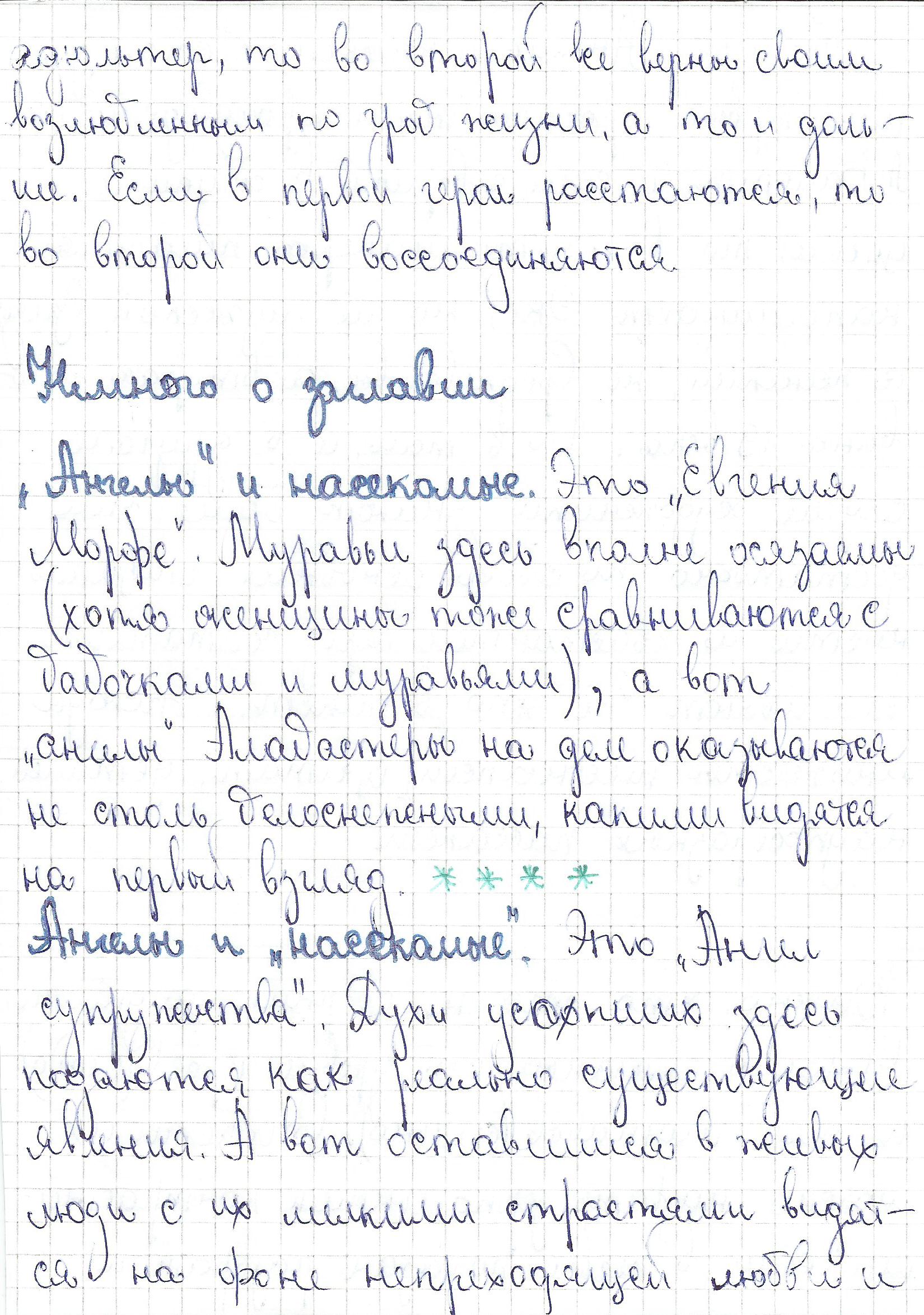 "Ангелы" и насекомые. Это "Евгения Морфе". Муравьи здесь вполне осязаемы (хотя женщины тоже сравниваются с бабочками и муравьями), а вот "ангелы" Алабастеры на деле оказываются не столь белоснежными, какими видятся на первый взгляд.