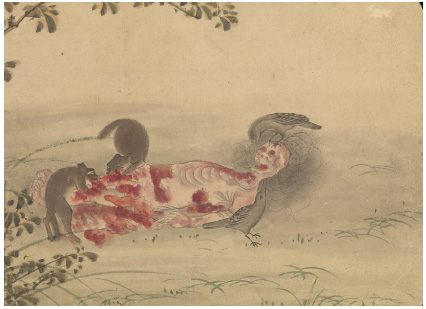 Но почитать можно.Ну и если будете читать электронный вариант, долистайте файл до конца. Найдёте несколько цветных иллюстраций, на которые в тексте нет никаких ссылок. Приведу, пожалуй, одну. Называется "Смерть придворной дамы, из серии японских акварелей (ок. XVIII в.)".