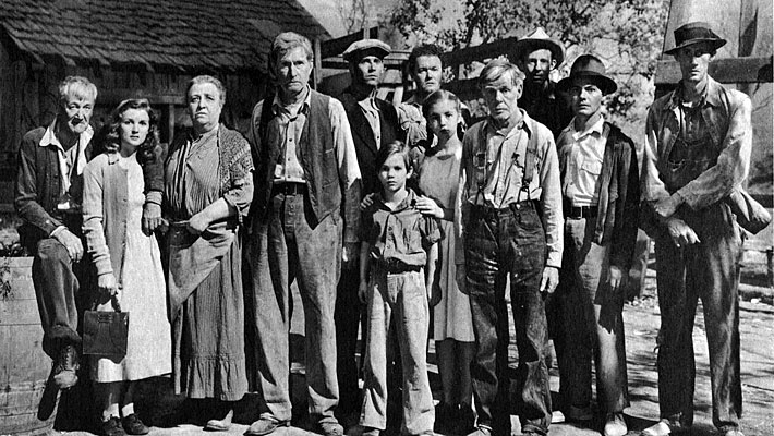 Ладно, дальше едем. Уехали, постепенно движутся к своей мечте, и вот они там. И там работают и жалуются на свою тяжкую жизнь, а нам всё не верится. Не, дело даже не в том, что уезжали от хлопковых полей в Оклахоме, чтоб собирать его в Калифорнии. Такая тяжкая жизнь, что каждый день есть мясо! При том, что свою солонину ещё в дороге всю съели. И как тяжко целых две недели без кофе. Куда ни глянь, будь то стихийный лагерь имени президента, правительственный лагерь или какая ферма - ни разу не имелось у "бедной" семьи проблем с питанием, разве что молока не было.