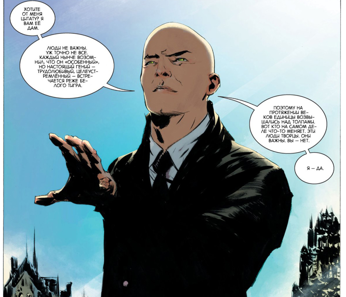 О том, что Лекс Лютор самодовольный козёл.