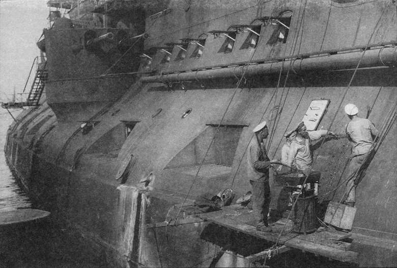 Исправление повреждений на эскадренном броненосце "Цесаревич", Порт-Артур, лето 1904 года