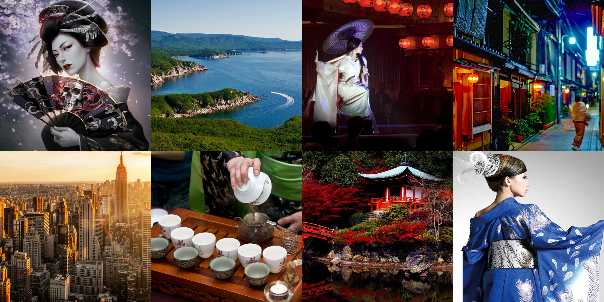 Квітучі гілки сливи і вишні, прозора пагода з тонкими паперовими стінами, шурхіт татамі і шовкових занавісок, тихі звуки сямісену, пряний аромат спецій, приготованих на крихітному столику для початку чайної церемонії - всього лиш декорація до красивої східної казки. Загадкова, надзвичайно граціозна, незрозуміла жінка з вибіленим обличчям, яскраво-червоними губами, з хитромудрою, ніби восковою зачіскою-іграшкою і ходою-дріботінням лебедя - принцеса, цієї казки. Майорять широкі рукави її блакитного з жовтим кімоно, розшитого золотими драконами, побрязкують срібні дзвіночки-сережки, обличчя випромінює доброзичливість і гостинність. Насправді це не казка, не фантазія і навіть не голлівудська мелодрама. Це просто шматочок вчорашньої і сьогоднішньої Японії, де все ще живуть незвичайні і найбажаніші жінки, компанія яких навіть через сотні років так необхідна чоловікам, жінки, що викликають погано приховану злобу і заздрість - гейші.