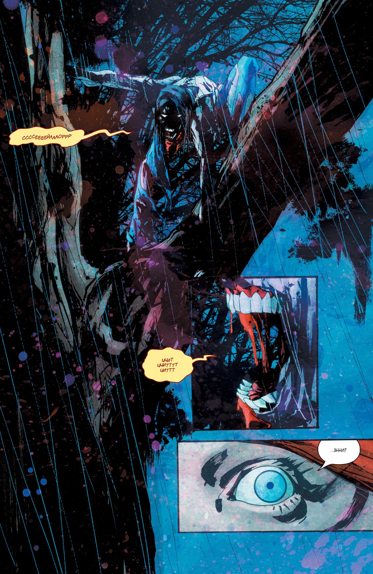Что поделать, внутри каждого из нас живут демоны: don't get too close, it's dark inside, вот это всё. Собственно, именно об этих скрытых от пытливого взора чудовищ и идёт речь в этом относительно небольшом комиксе, о чём сам Скотт Снайдер честно признаётся в послесловии к одному из номеров. "Ведьмы" не столько о кровожадных существах, прячущихся в лесу, сколько о человеческой уязвимости, об эгоизме на грани эгоцентризма, о жизненных ценностях и семье. Наверное, именно поэтому монстры изображены достаточно схематично и представляют из себя скорее ломкую, угловатую абстракцию — автор словно предлагает взять разноцветный стикер, написать на нём свой страх или порок и приклеить его на страницу, поперёк жуткого CHIT-CHIT-CHIT.