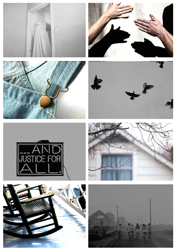 Каждая глава - это происшествие. Ну то есть то, что можно им назвать глазами девочки 7-9 лет, ведь для малышек это целый мир. Мы видим взросление ее брата, ее друзей, принципиального отца-адвоката, правильной негритянки-работницы, жизнь соседей.
