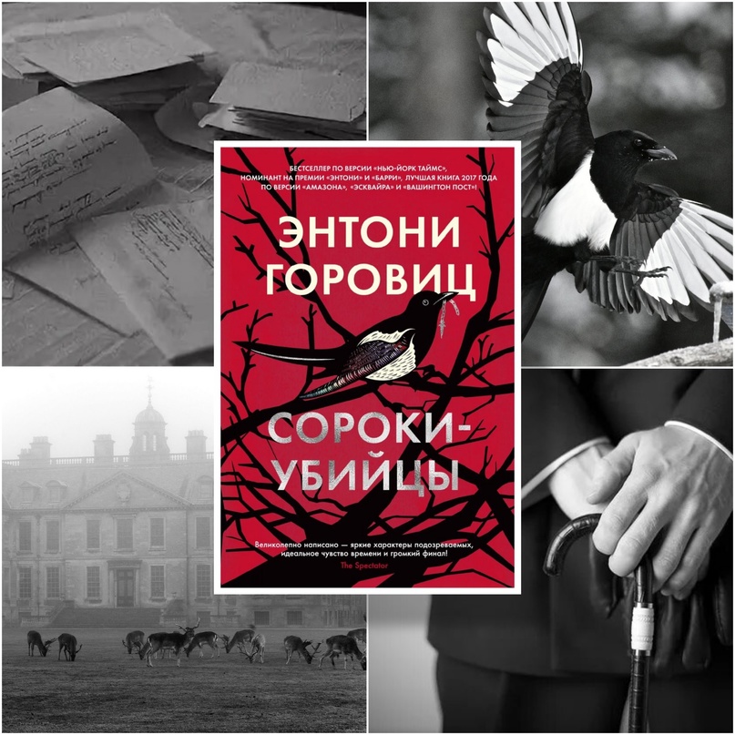 Сначала вместе с главной героиней мы читаем «Английские сорочьи убийства». Это классический английский детектив без последних нескольких глав. Но к сожалению, такой вид детективов зачитан уже, все персонажи достаточно шаблонны и карикатурны. Но в последствии, автор (уже Горовиц) показывает, что карикатуры были с реальности. Автор ненавидел детективчики, на которых прославился. Расследование героини дает хоть какой-то толчок истории, дает хоть какую-то динамику. Потому что сама книга Конвея - достаточно унылая и скучная.