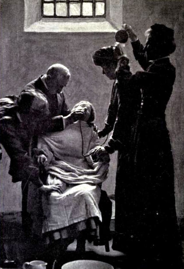 Горничная Кэт. Представляя читателю эту героиню автор немного углубляется в историю на рубеже XIX - XX веков, когда по Англии уже широким шагам шествовало движение суфражисток, выступавших против дискриминации женщин, боровшихся за получение женщинами политических прав. За публичные демонстрации и радикальные методы многие суфражистки попадали в тюрьму. Не избежала этой участи и Кэт. Так вот если вы раньше не знали о том, как обращались в тюрьме с суфражистками, то автор вас просветит. Особенно о процессе принудительного кормления.... очень страшном по своей сути и по последствиям.