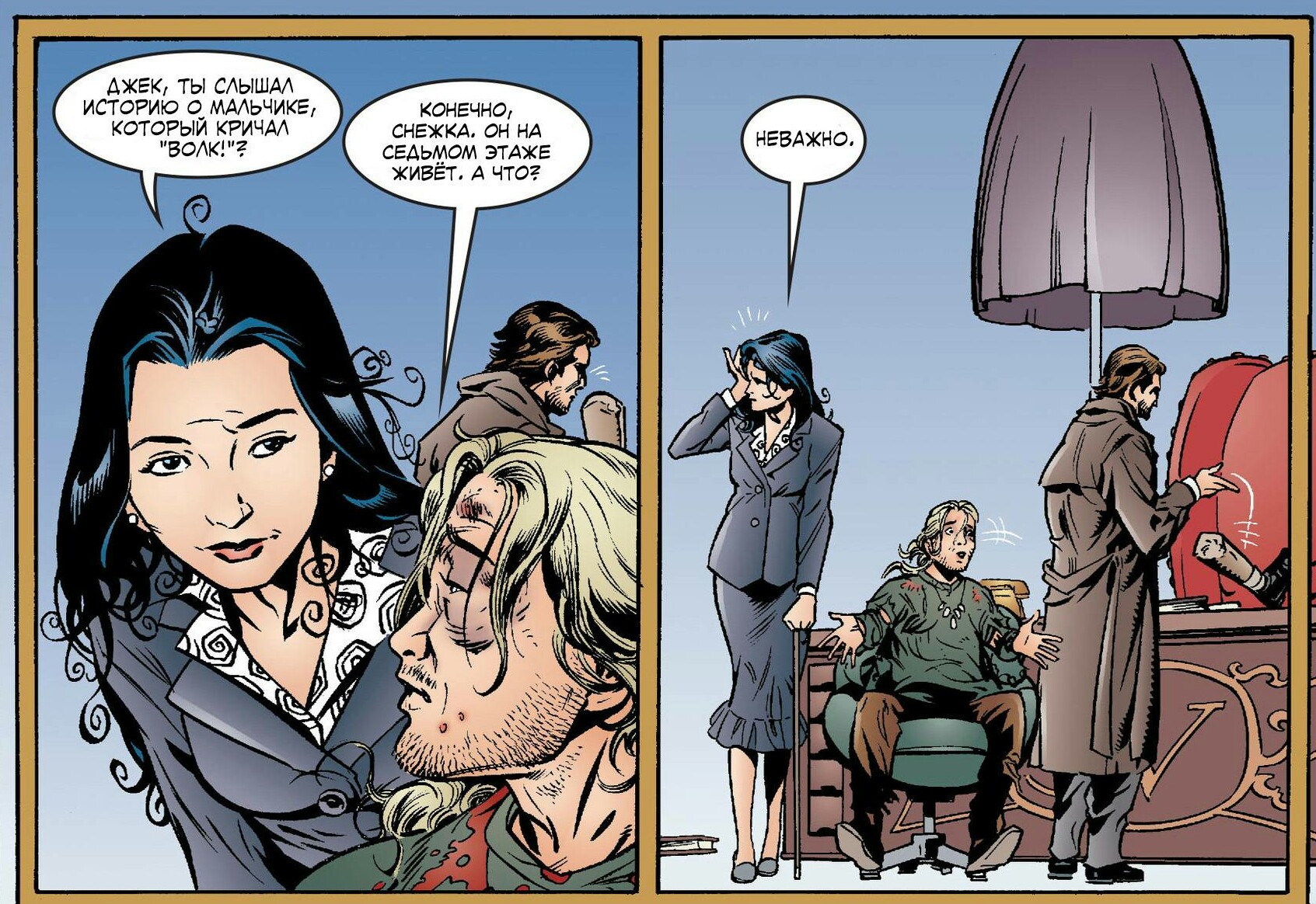 Да уж, эти сказки явно не для детей писались. Впрочем, сказочники старой школы - братья Гримм, Перро или Андерсен, оценили бы происходящую вакханалию! А история и в самом деле набирает нехилые обороты. Поддельное благополучие Фаблтауна тает на глазах. Помимо внутренних открытых разборок в сказачном мире идёт и подковерная страшная борьба. А самое главное, что объявляется их старый Враг, который заставил их когда-то покинуть сказочный мир. В этот раз, правда, он действует очень хитро и мудрено. Лично меня просто одна сцена с армией врагов провала до слёз. И нет, не от страха или жалости, а от смеха. Я словно окунулся в фильм Матрицу. Меня даже первое трио натолкнуло на эту мысль, так что я прям ждал момента с толпой. Лень сравнивать даты, интересно просто кто у кого стибрил этот прикол =D