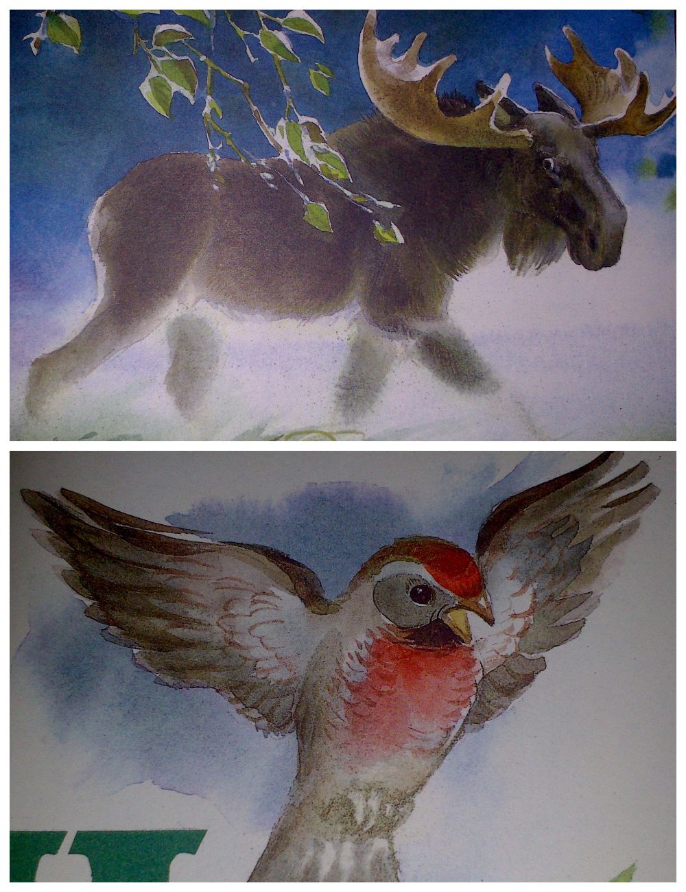 "Лесная азбука" Трофимова со стихами о родном крае, о животных, птицах, растениях, реках нашего российсского леса. Мне стихи в основном пришлись по душе, а сын большинство воспринял ровно. А вот иллюстрации В.П.Кадочникова понравились нам обоим, покажу несколько.