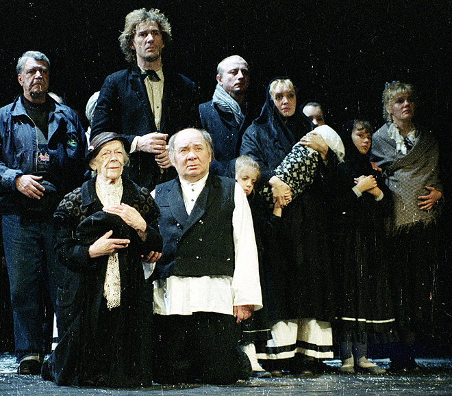 Спектакль открывается зажженными свечами, которые уходят спиралью в небо и рассыпаются по нему, как звезды. Как души умерших, расстрелянных, сожженных, замученных. Тихо звучит музыка. Тевье обращается к Богу: «ТЫ этого хотел? Понимаю, что мы - избранный народ. Бог мой, но иногда выбирай кого-нибудь другого».18278