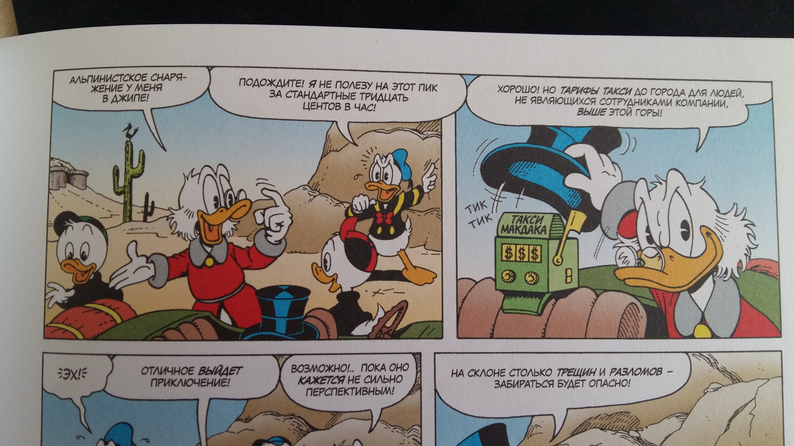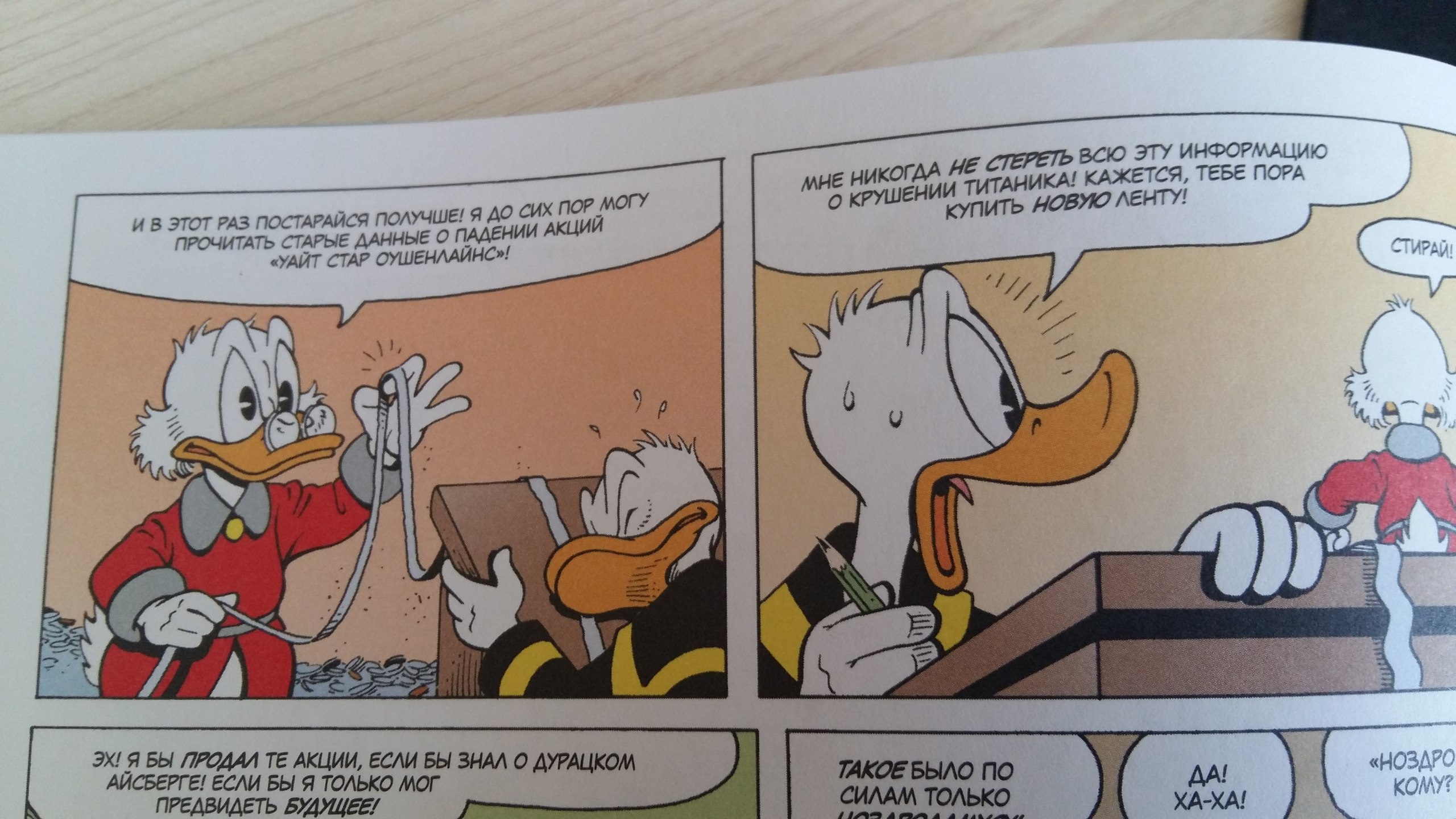В конце хочу отметить, что это просто великолепное издание для всех поклонников журналов "Микки Маус" и "Утиные истории", выходивших в середине 90-х-начале 00-х в России (вы же их помните?), а вот любители мультсериала могут быть несколько разочарованы. Всё-таки он отличается и по раскраске персонажей (Скрудж, например, там носит синий костюм), и по сюжетам, более приближенным к современности.