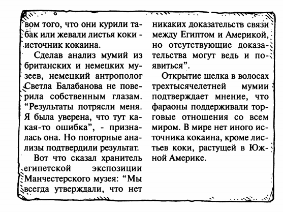 Книга позиционирует себя, как книга для детей. В случае с сушеными египтянами в это можно поверить, а здесь же...ппц..грубо говоря тут 120 страниц..и на каждой странице рассказывают про убийства, расчелененку, каннибализм и остальные прелести. Кошмар! Не советую читать НИКОМУ! Это возмутительно. Все так рассказывать для детей - это не есть хорошо. Возможно, мне омерзительно читать только потому что мне не особо интересна история этого народа... но можно было более красочно преподнести все это. сначала я выделяла интересные "статьи" Минусом то, что подымаются странные темы ...наркотики..зачем про них рассказывать детям? Вырывают сердце! Зачем об этом рассказывать детям? Даже для меня- это было просто омерзительно. ФУ! ФУ! ФУ! Но я дам автору еще шанс и прочту еще книги из этой серии.