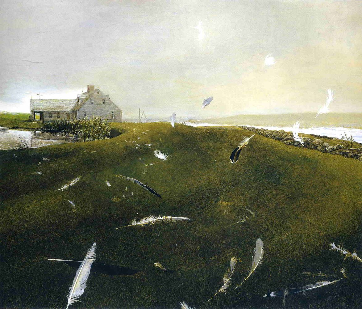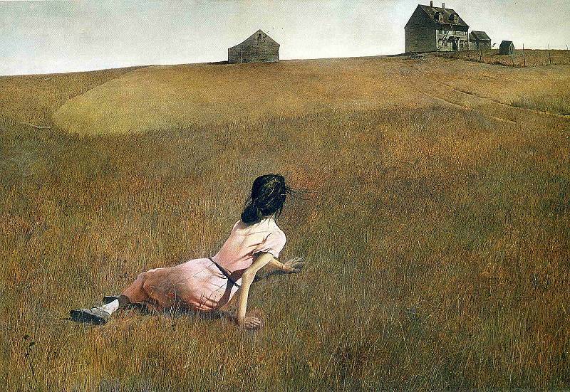Heimskringla30 марта 2018 г.Читать далееЯ поворачиваюсь, где сижу, вытягиваю шею – посмотреть, на что он глядит. Это картина – большая, заполняет собой почти всю стену у меня над головой. Девушка на желтом поле, в розовом платье с тонким черным пояском. Темные волосы плещут на ветру. Лицо скрыто. Она тянется к призрачному серебристому дому и сараю, пристроившимся на горизонте, под бледной лентой неба.