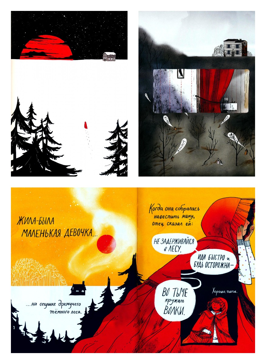 Эмили Кэррол очень изысканно и невероятно стильно подала это в нескольких небольших историях, полных важных недосказанностей, дорисованных оригинальными рисунками помимо нашего собственного воображения. Это совершенно иной уровень повествования, действующий на восприятие каждый раз, когда ты берешься за чтение и просмотр истории - она не теряет своей способности пугать. Отрыв от книги иллюзорен. Возвращение в нее заставляет испытывать жуть на любой странице. С какого бы места ни начать читать "Через лес", тебя обволакивает тяжелой атмосферой настороженности.