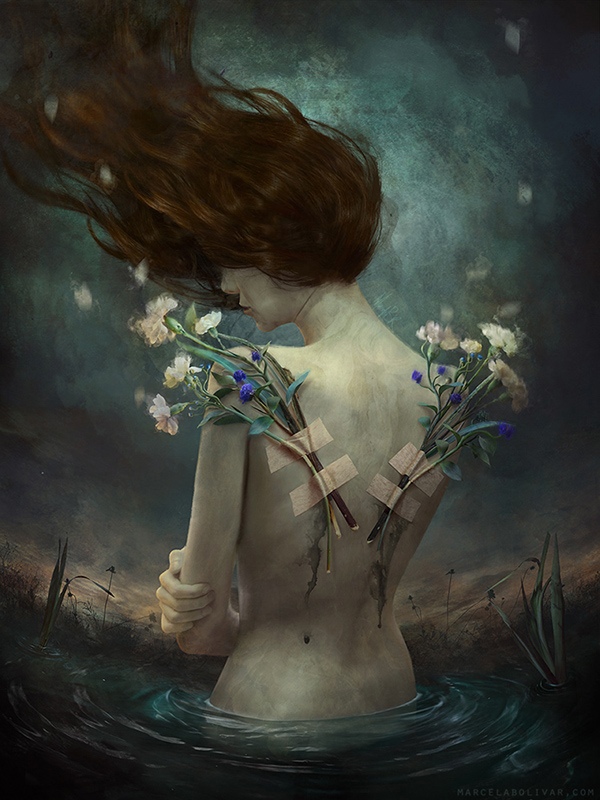 Она переживает о Саше, ложится спать, и ей снится.. как на её теле, словно тёмные цветы, растут — раны.
