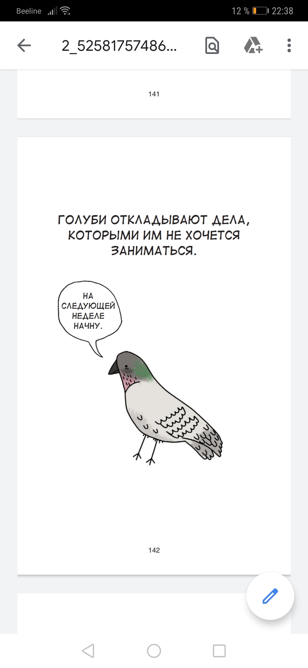 Argon_dog3 февраля 2020 г.Могло бы быть забавно и весело, если бы было сделано в каком-нибудь другом формате. От того, что набор несложных надписей и картинок собрали в книгу, книгой они быть на самом деле не стали. И это слишком ( в плане того, что ты просто перелистываешь однотипные страницы и, вероятно, за те пятнадцать минут, что ты потратишь на это действие, у тебя устанет палец). Вот в виде блога или колонки в Телеграмм могло бы зайти. Или книжки с наклейками. Для детей.