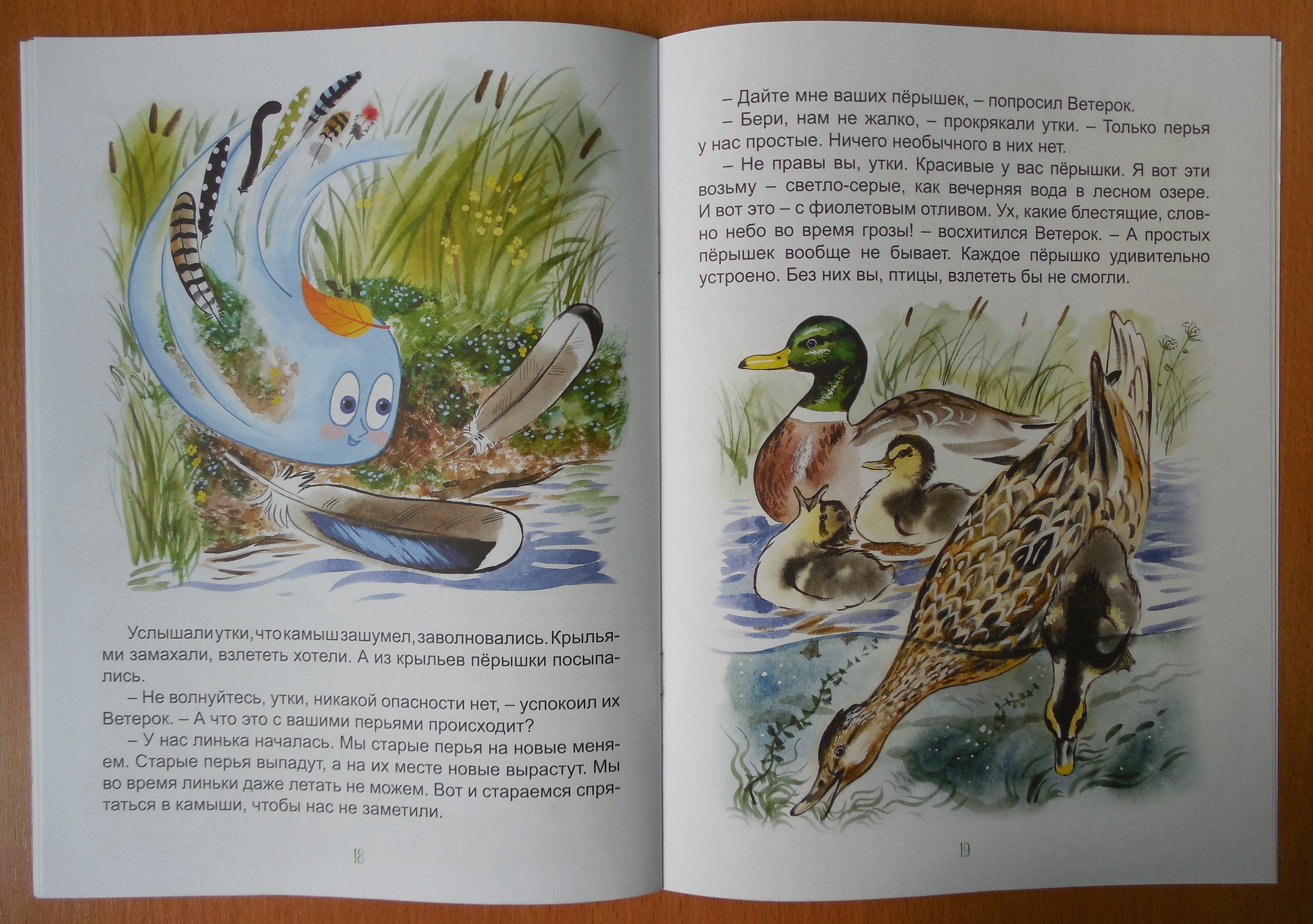 Следуя за героями книги, можно увидеть не только, как выглядят пёрышки различных птиц, но и узнать, как они устроены! Писатели щедро делятся своими знаниями и наблюдениями. Далеко не каждый знает, почему вороны могут "подраться" с сороками, о том, что дятел бывает зелёный, или, что утки иногда не могут летать, и поэтому прячутся в камышах...