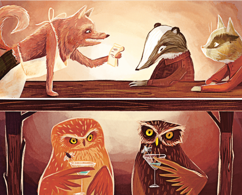 Не знаю, кто первый выстрелил с этой идеей "перевернуть привычные вещи на непривычный лад", но у меня первым был "Зверополис", от него и буду плясать. Обычно я ретеллинги и заимствования ой как не жалую, но тут другой случай. А жалую я, когда писателю удается взять что-то привычное нам, даже набившее оскомину - и представить это под углом совершенно непривычным: маленьких человечков, мутантиков, чья цивилизация давно выродилась, зверей... Поэтому даже открывающая сцена в баре мне зашла: только представьте бодрую компанию СЫЧЕЙ, напивающихся коктейлем "Пень-Колода", которые "под мухой" в буквальном смысле. Ну весело ж, задорно!