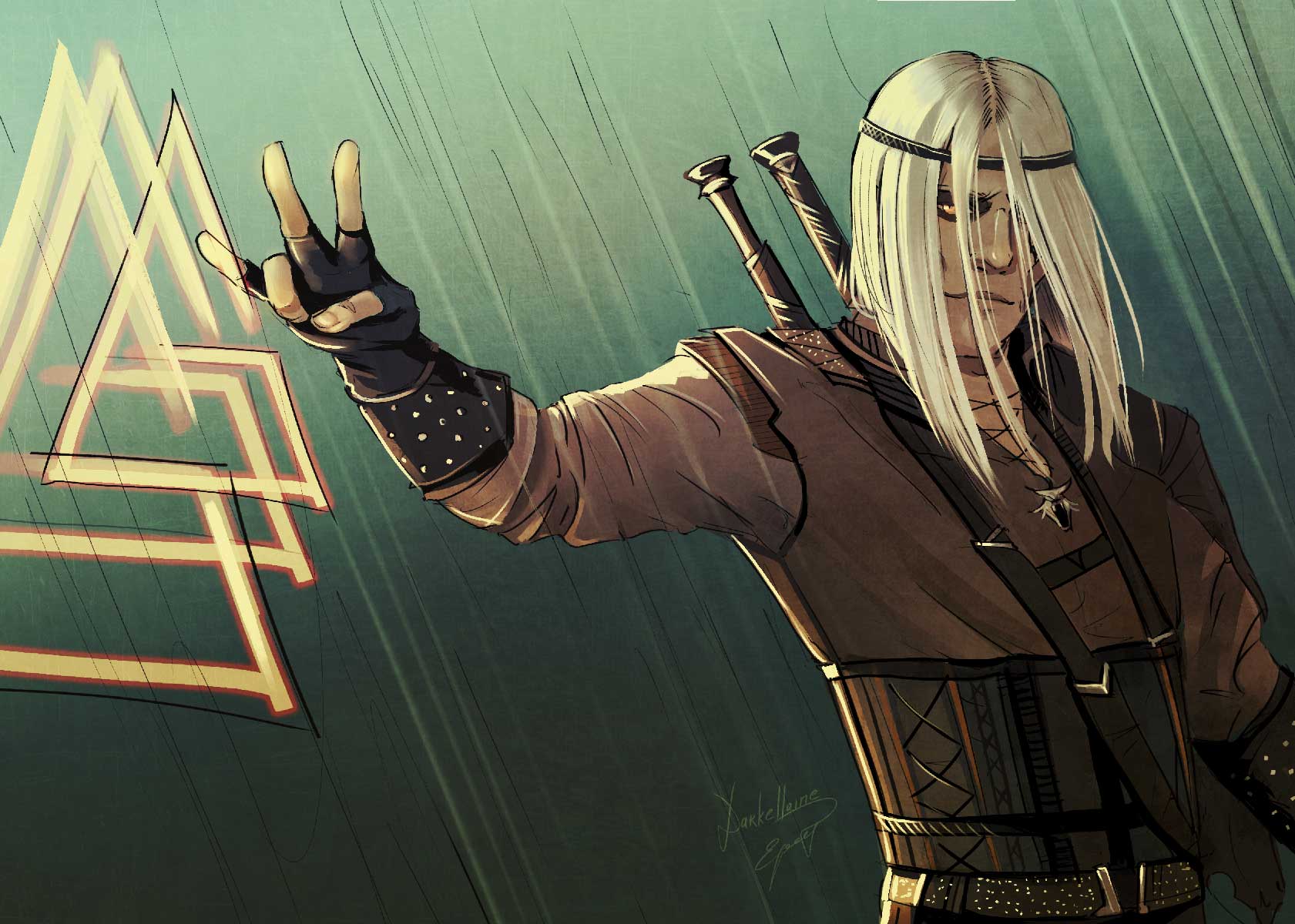 /Знаю, два меча неканон, но так уж захотелось/Да, Цири это Мэри Сью. Но какая! Настоящий бренд, собирательный образ всех магических макгаффинов и лицо своего времени, часа Презрения. И как удачно, что только ленивый не посчитает свою эпоху веком меча и топора (и так далее по списку). Словом, персонажка очень удачная. Методы Сапковского, конечно, не новые, но он использовал их столь нагло и без стеснения, что ты уже и не хочешь к чему-то придираться.