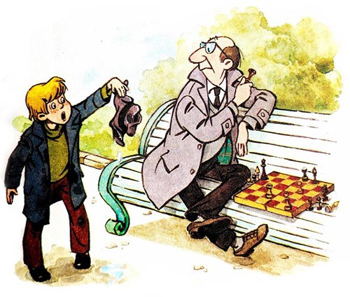 И опять потянулся шестом к шляпе. Я подождал немного, чтобы ветерок подогнал ее поближе. И все время потихоньку пригребал ее к себе. Мне очень хотелось отдать ее шахматисту. А вдруг он и вправду гроссмейстер? А может быть, это даже сам Ботвинник! Просто так вышел погулять, и все. Ведь бывают же такие истории в жизни! Я отдам ему шляпу, а он скажет: «Спасибо, Денис!»И я потом снимусь с ним на карточку и буду ее всем показывать...