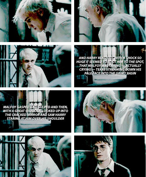 robot27 сентября 2017 г.Гарри замер на месте от потрясения — он понял, что Малфой плачет, плачет по-настоящему, что по щекам его льются, стекая в грязную раковину, слезы. Малфой задыхался, давился слезами, но затем, после нового содрогания, поднял взгляд к растрескавшемуся зеркалу и увидел за своей спиной вытаращившего глаза Гарри.