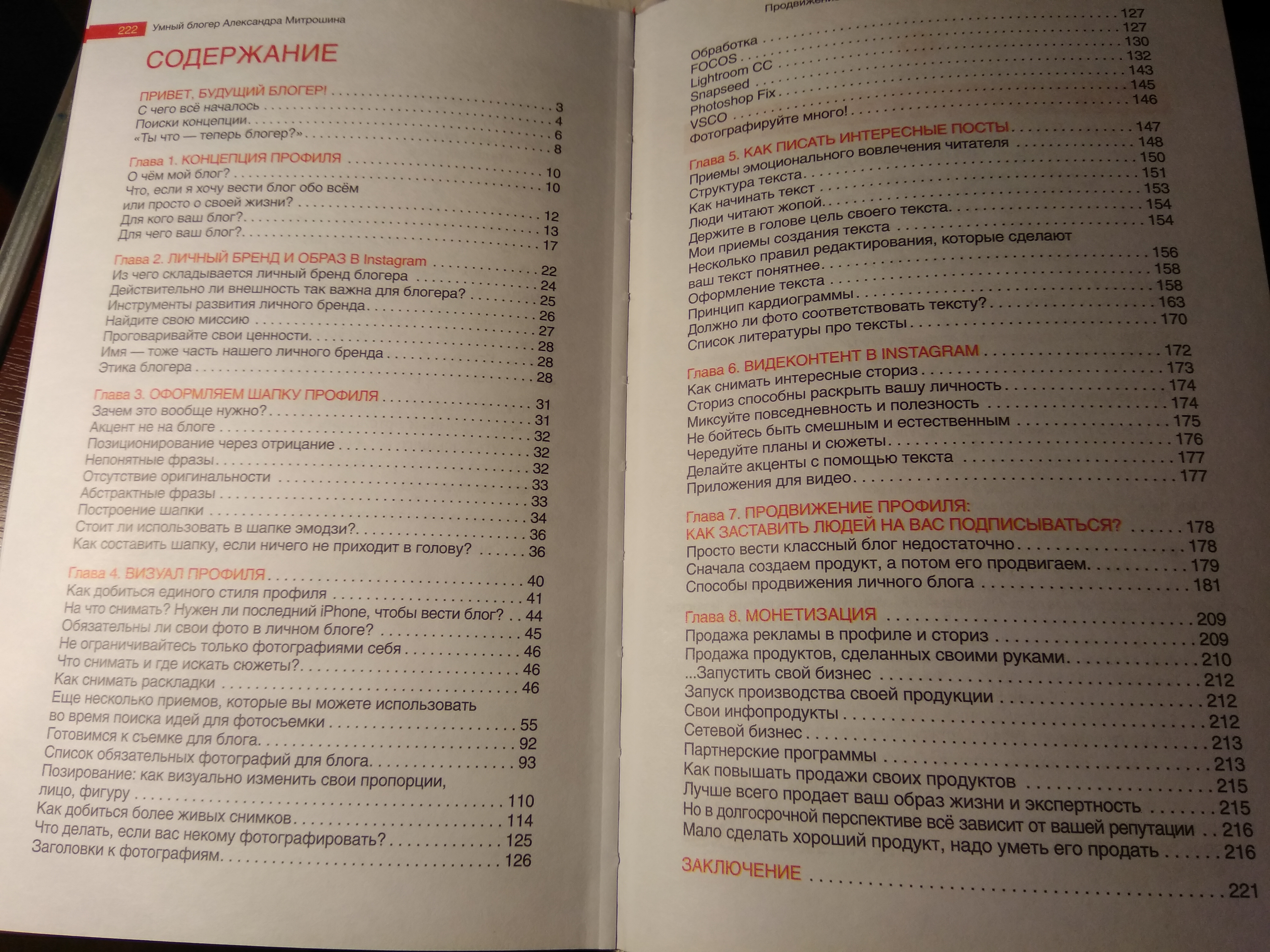 В общем, представление сложилось, для начала хватило. Ждать от книги нон-фикшн или художественного повествования не приходилось; таких ожиданий, в общем-то, и не было. Действительно, хорошая инструкция для начинающего блогера и эффективного продвижения в Instagram. Читать ее следует именно так.