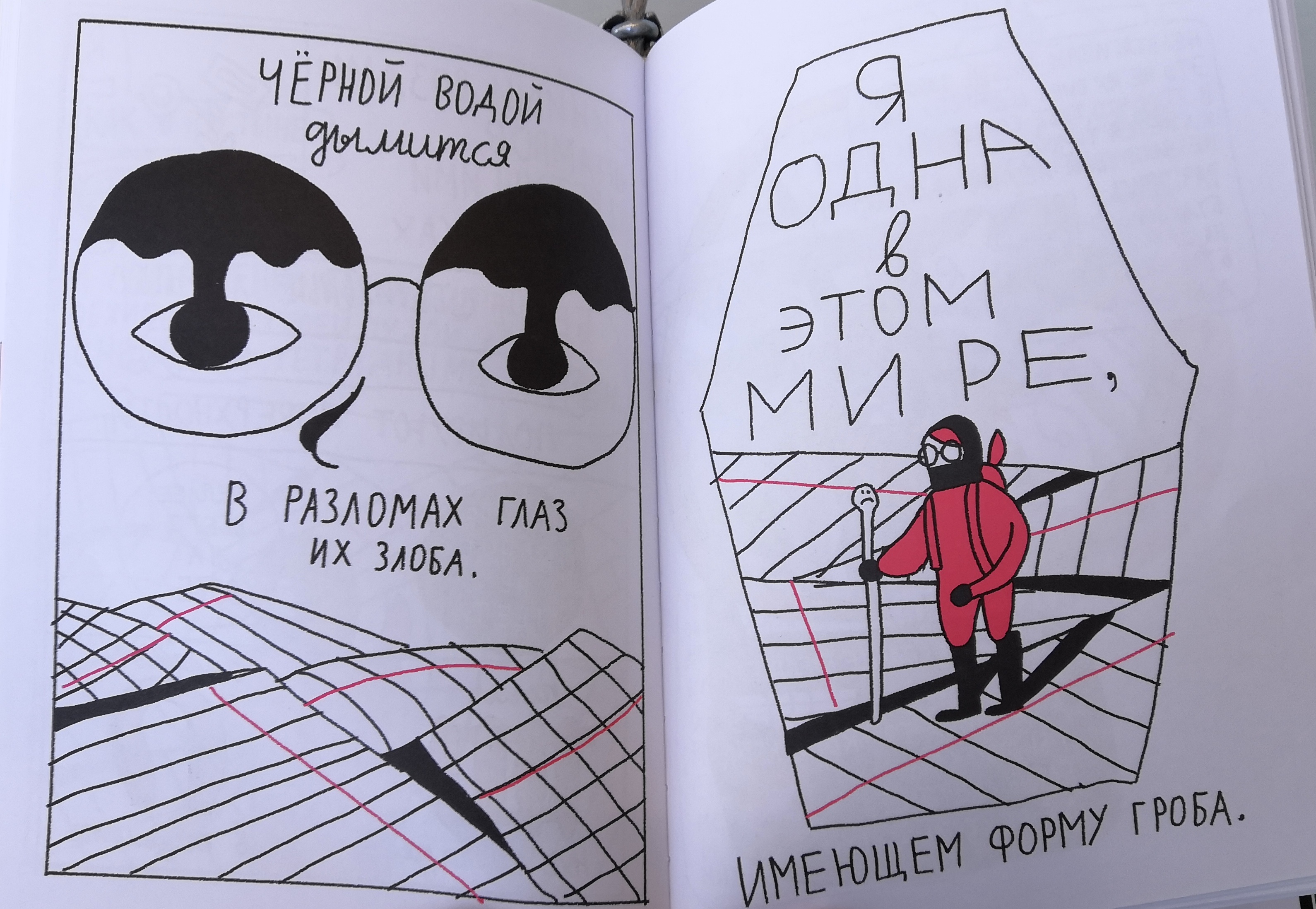По форме (ритмичной, рифмованной) и по смыслу мне понравилось. Но продолжаю не любить графические романы за внешний вид. Невозможно читать, глаза устают, буквы путаются, строчки скачут - какая-то бешеная пляска, а не чтение. Не в моём возрасте, бабушка хочет покоя. Хотя я понимаю, что для подростка сочетание ритма с черно-бело-красной графикой - удачное. В данном случае рисунки дополняют текст, добавляя баллы в счет идеи.
