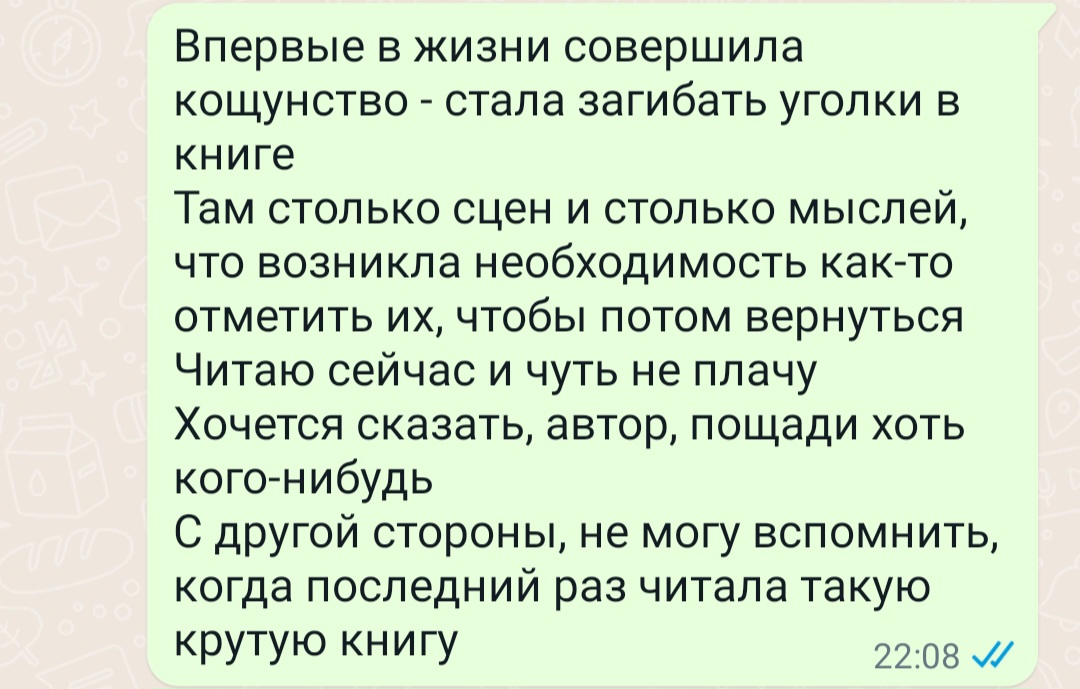 Как-то так. Много эмоций, всего и не напечатаешь. Но книга реально крутая, одна из лучших в моей жизни.