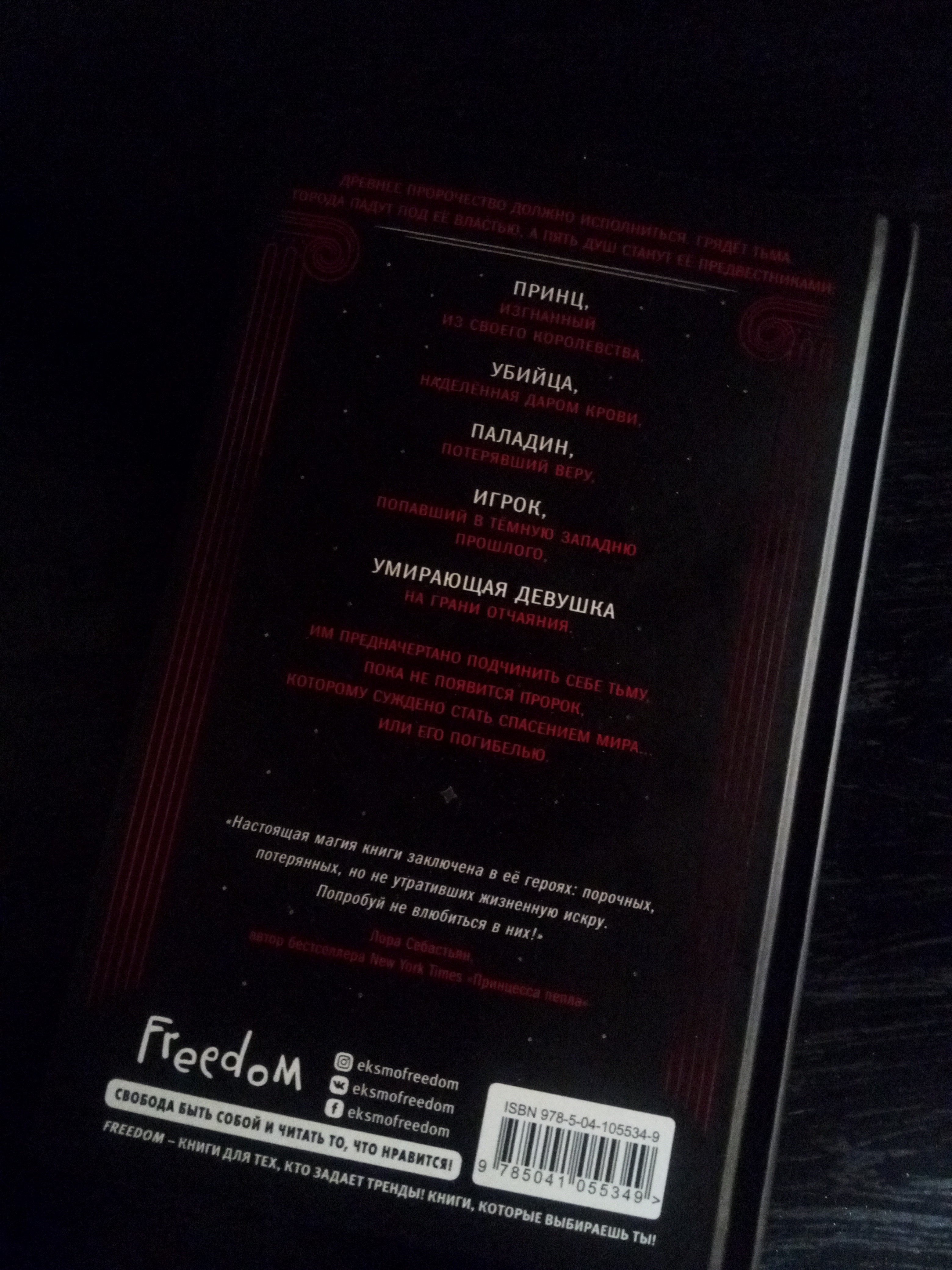 "Грядёт тьма, и города падут под её властью, а пять душ станут её предвестниками. Им предначертано подчинить себе тьму, пока не появится пророк, которому суждено стать спасением мира... Или его погибелью".Читать далееРоман Кейти Пул "Грядёт тьма" изо всех сил притворяется тёмным фэнтези. Тут и - у-у-у! - страшное пророчество, и погрязшие в грехах священники, и магический геноцид... И чёрная обложка с красными страницами и рисунком, напоминающим карты таро.