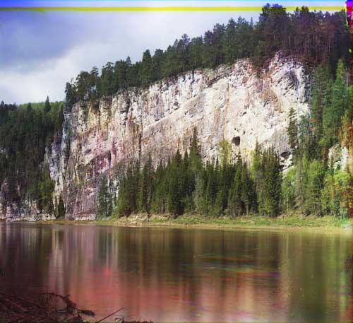 Первая цветная фотография достопримечательностей реки Чусовой, сделанная фотографом С.М. Прокудиным-Горским в 1912 году. Кстати на фото в скале виден грот, в котором было найдено захоронение шамана.