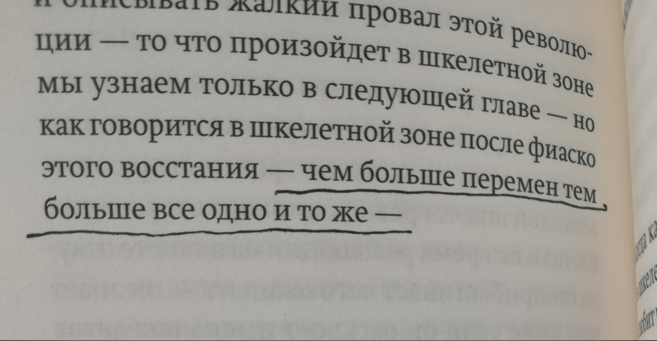 Совсем крохотный текст франко-американского писателя является фактически фантазией на полях более крупных текстов. Фантазией о «шкелетах» - формах существ, которые по воле таинственных сил превращаются в того или иного человека, а после смерти возвращаются в прежнее состояние, сваленные кучу в неком трансграничном мире, в ожидании следующей мутации.