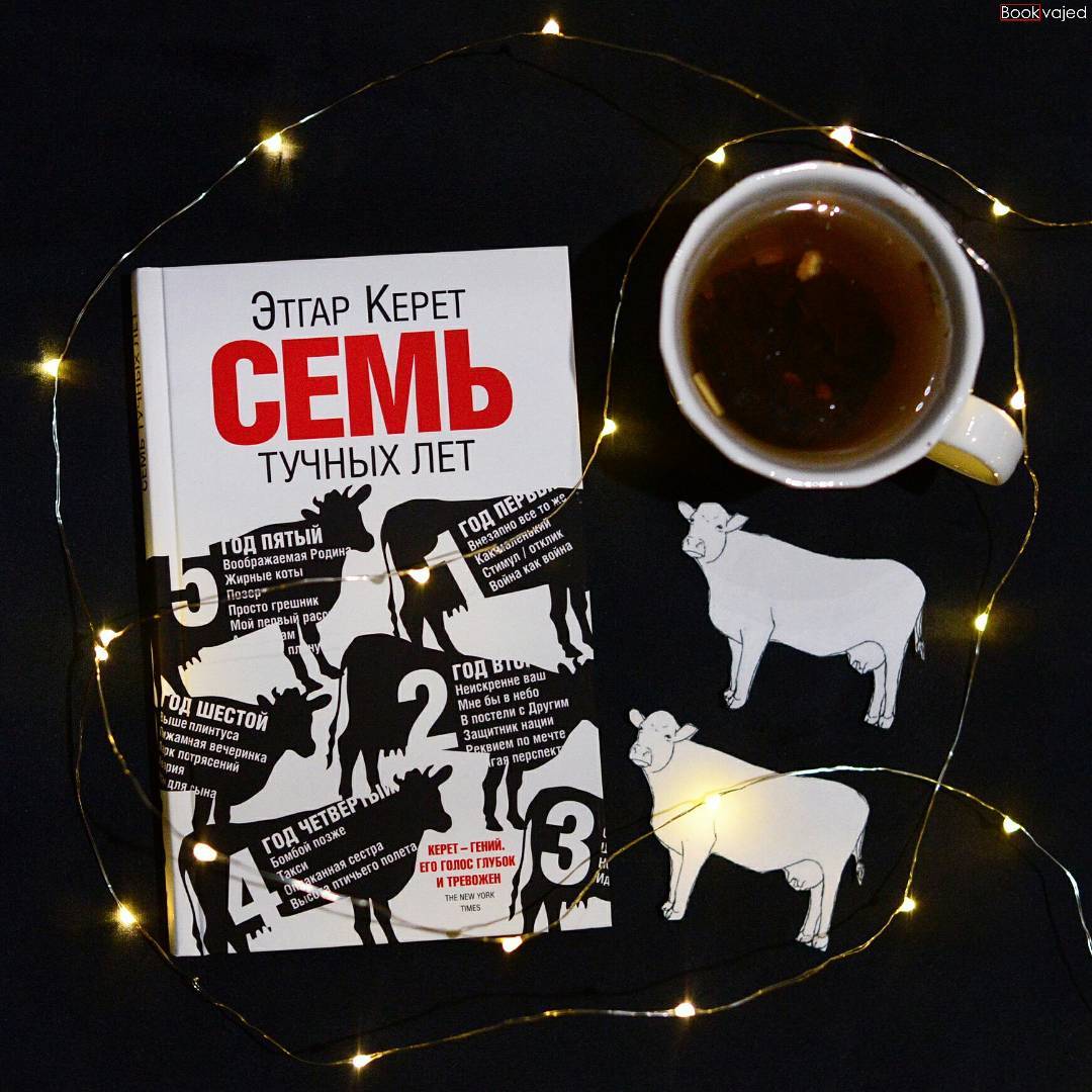Как бы там ни было, название сборника отсылает к эпизоду из «Книги Бытия», когда Иосиф толковал сны фараона про выходящих из Нила семь тучных и семь тощих коров, обещая годы процветания, а затем — упадка. Так, лучшие годы семьи Этгара и Ширы Керетов начинаются с рождения сына Льва, а заканчиваются через семь лет со смертью отца писателя. Причём образ чудаковатого неунывающего старика в книге стал одним из тех, что запомнился больше всего, а историю о том, как он познакомился со своей будущей женой, матерью Этгара, захотелось непременно кому-нибудь пересказать…