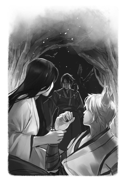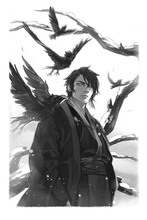 И последний, но, безусловно, не по значению, персонаж, Юмей. Ворон-ёкай, известный как Тэнгу. Безжалостный, беспринципный, всюду выслеживающий лишь свою выгоду, расчетливый негодник, полюбившийся моему сердцу.Иногда персонажа можно просто представить в голове по описанию автора, а в редкие моменты их удаётся почувствовать и понять. Хотелось бы верить, что мне удалось посетить и понять каждого из них.