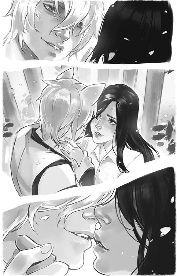 Во второй книге развивается новый виток отношений между Эми и Широ. Его «ёкайский» флирт с Эми, то, как он намеренно злит ее, потому что ему нравится наблюдать, как у девушки горят глаза, щеки розовеют, и она на него дуется. Были смешные моменты, где я была просто в восторге от их реплик, но больше всего я таяла от более глубоких моментов, где главные герои не дурачатся, а шаг за шагом отдают частичку своего сердца другому. Их желание защитить друг друга, стать опорой и поддержкой заставляло мое сердце пропускать удар.