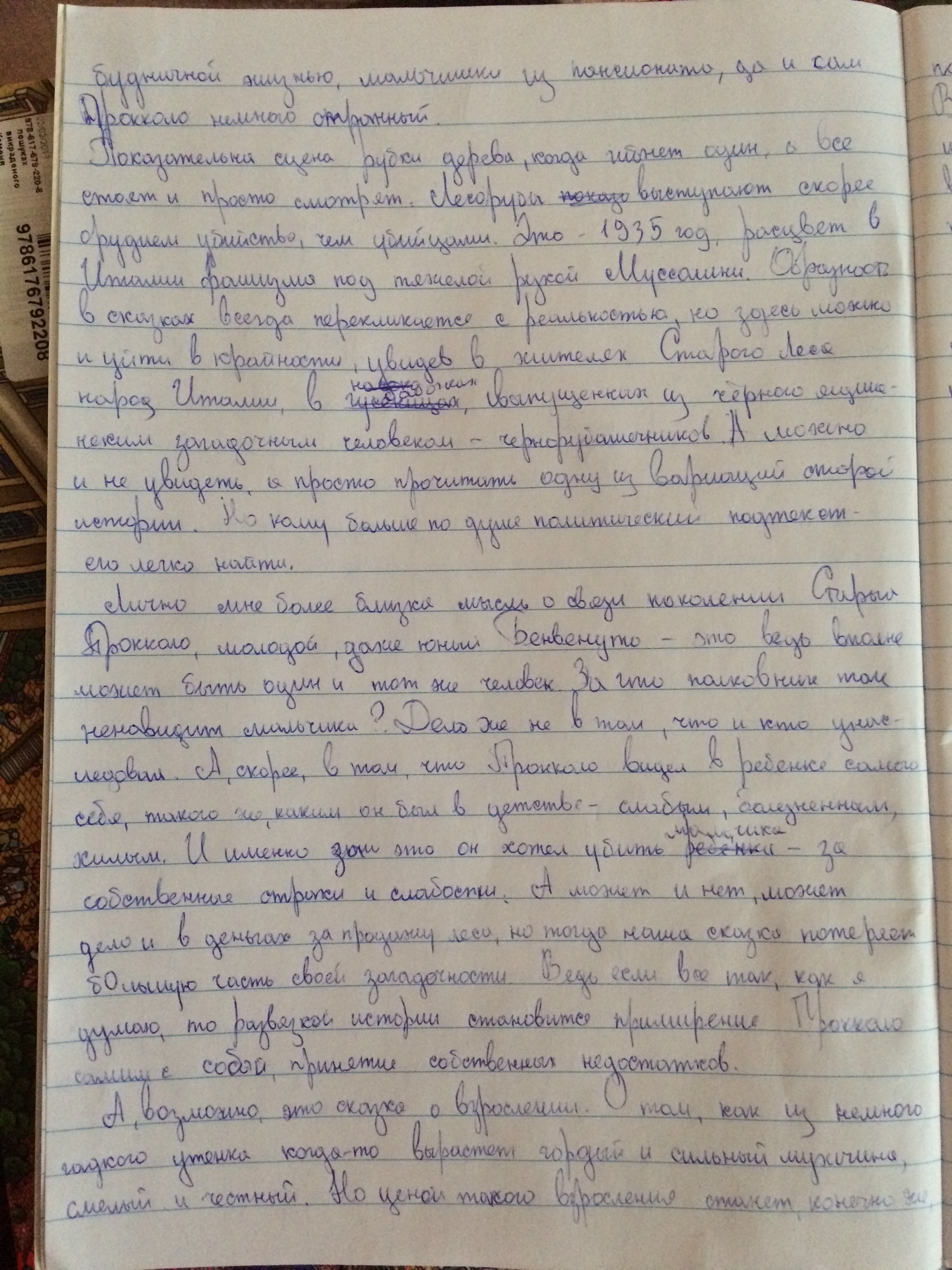 Это сказка о глубинной связи природы и человека. Да, это эко-тематика во всей красе, это, возможно, даже описание неоязыческого культа, основанного на вере в то, что каждое дерево имеет душу. Правда же не новая идея? И ведь прошу заметить, не сам старый Лес наделен душой, а каждое дерево в нем. Птицы, конечно же, умеют говорить, ветра обладают самым пакостным характером, и только люди выглядят на фоне всего этого бесчинства... ну слегка странно. Да, именно это я и хочу сказать - книга написана так, что странными выглядят именно люди, деревня с её будничной жизнью, мальчишки из пансионата, да и сам Прокколо немного странный.