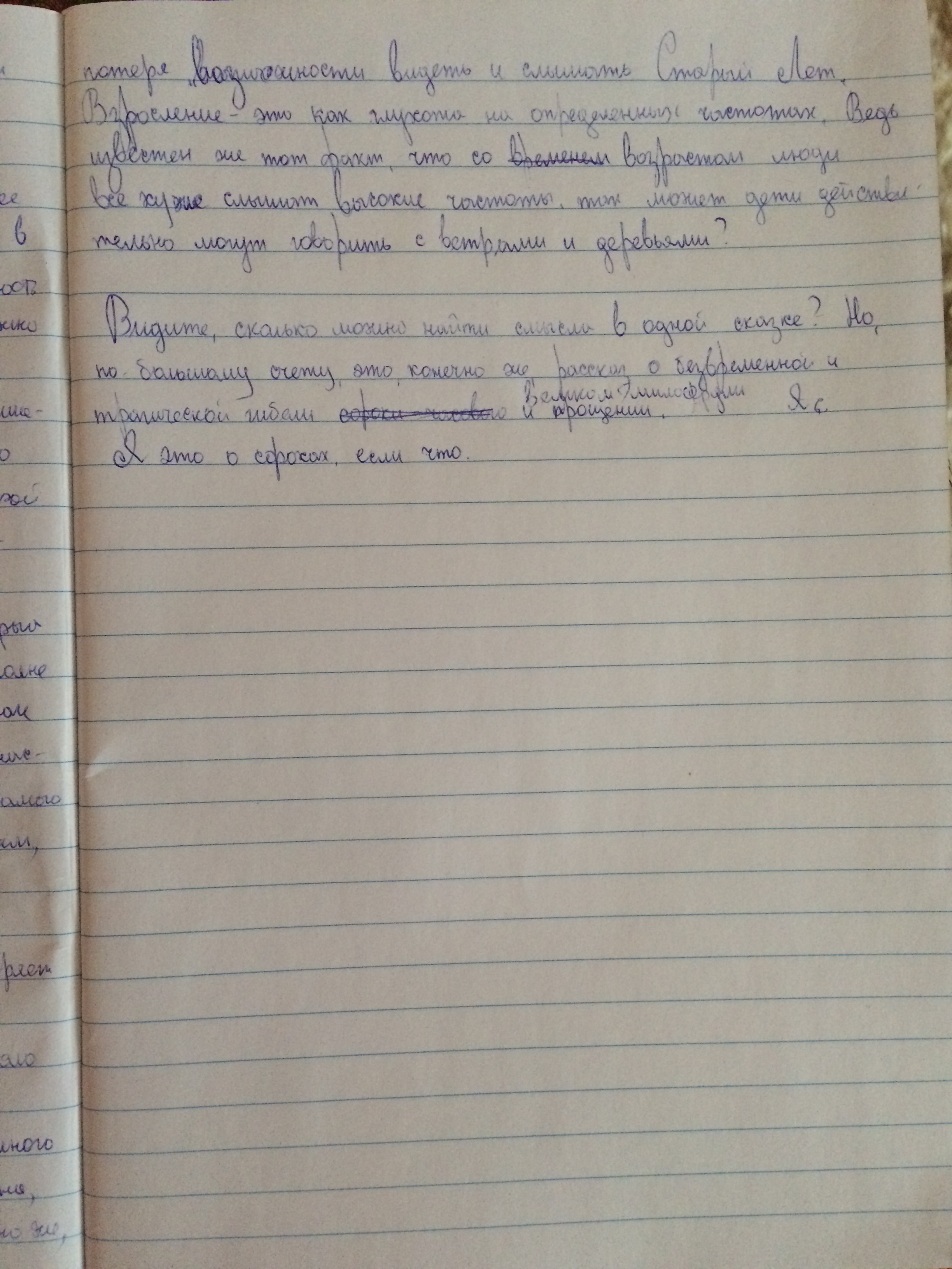 Мы становимся сильнее и мудрее, как нам кажется, но на самом деле мы становимся слепыми и глухими к тому, что нас окружает. Если на животных мы иногда обращаем внимание, хоть и не понимаем их, то мим растений просто проходим, а ведь у них тоже есть душа. Они тоже живут, поют песни, отмечают праздники, а потом приходит время умирать. А с ветром кто-нибудь из вас разговаривал? То-то же.