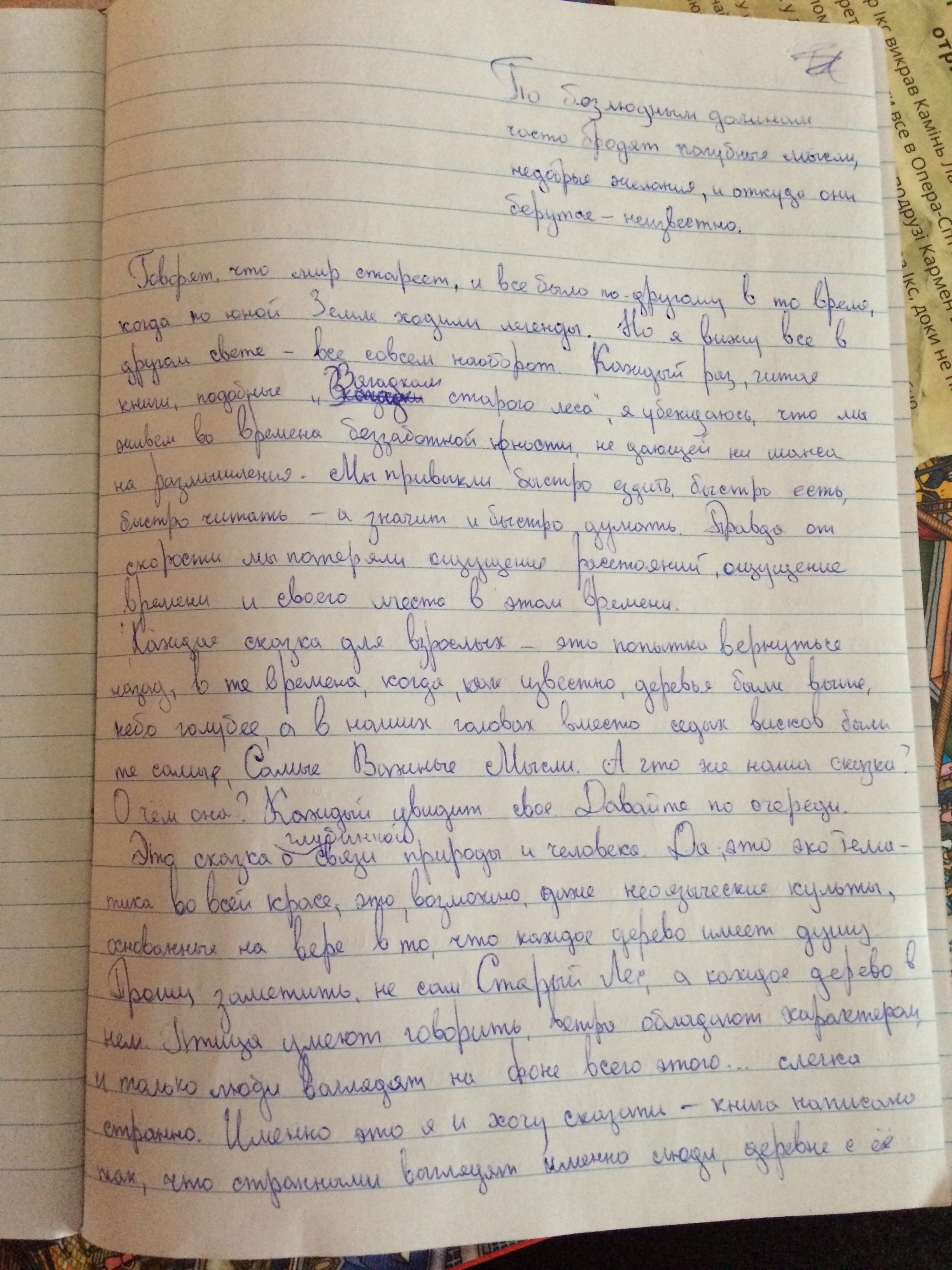 Это такая книга, для чтения которой надо отложить все будничные заботы, убрать из головы копошение бесконечных мыслей о проблемах, заботах и вообще обо всей своей жизни, и просто окунуться в нее. Войти в этот Старый Лес, который может казаться довольно мрачным и неприступным, увидеть зверей, которые там обитают, услышать музыку ветра и обязательно постараться увидеть духов, населяющих его. Да, я уже не ребенок, и, скорее всего, попав в этот лес я бы не увидела там ничего, кроме просто обычных деревьев, ветви которых шевелит самый простой ветер, но читая книгу очень хочется верить, что детство может остаться с тобой, что частица взгляда на мир, присущего только детям, еще есть во мне.