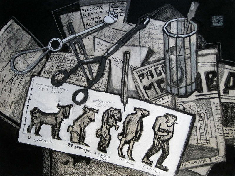 А есть еще пес Шарик, который мечтает, чтоб он был сыном какого-нибудь собачьего принца, который любит краковскую колбасу и не любит кошек. Вот пес мне глубоко симпатичен. Как его жалко в начале повести, когда он с больным боком мерзнет на улице. И во время операции мои симпатии отвернулись от профессора и переместились только на пса.