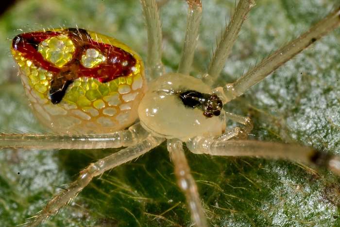 Зеркальный паук (род Thwaitesia). Пауки из рода Thwaitesia - настоящие произведения природы, одно из тех чудес, благодаря которым даже в головы яростных атеистов закрадывается мысль, что такие существа не могли появиться просто так. Их явно кто-то создал, и этот кто-то был одновременно художником и ювелиром. Главная достопримечательность этого паука с полупрозрачными лапками - брюшко, украшенное пятнами, похожими на маленькие зеркальца. У некоторых видов они могут даже мерцать радужными отливами. Иногда кожа под пластинами разукрашена разноцветными пятнами, что создает изумительную композицию. Брюшко зеркальных пауков бывает разных форм, причем достаточно причудливых. Особенно интересно то, что зеркальные пятна могут уменьшаться во время движения или если паук напуган, а промежутки между ними при этом увеличиваются. Когда паук спокоен и отдыхает, зеркальца снова становятся большими, покрывая собой все брюшко, и он превращается в сплошную мерцающую каплю серебра. Эти красавцы живут в экваториальных лесах по всей планете, род насчитывает 23 вида. Все его представители миниатюрны, ростом в 3-4 миллиметра.